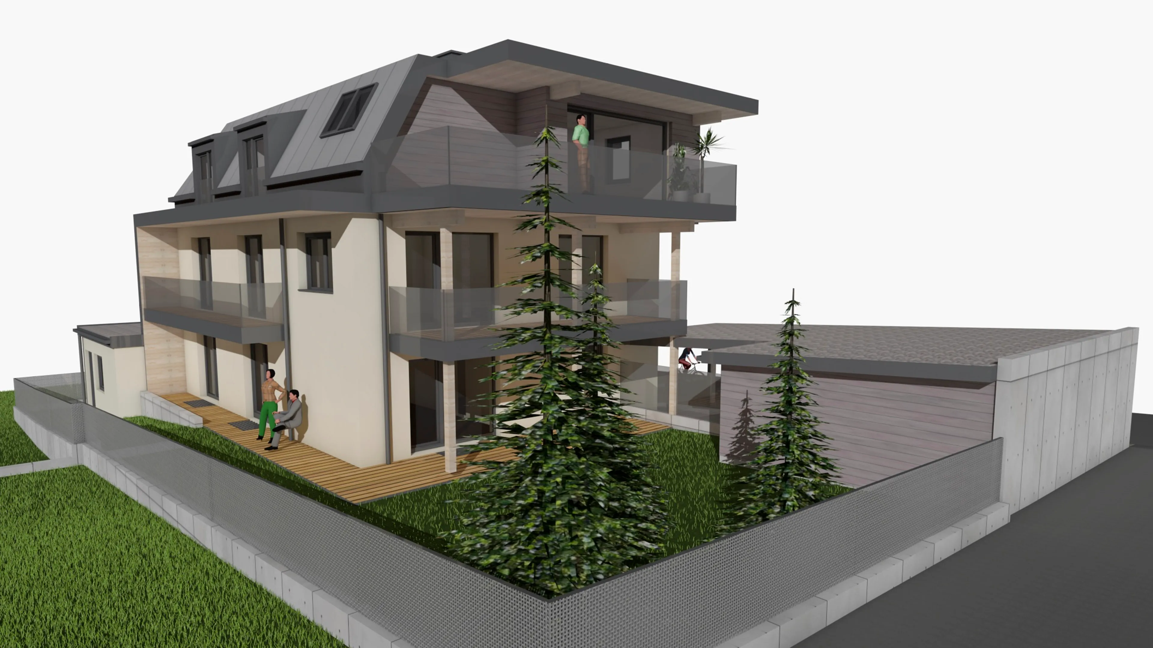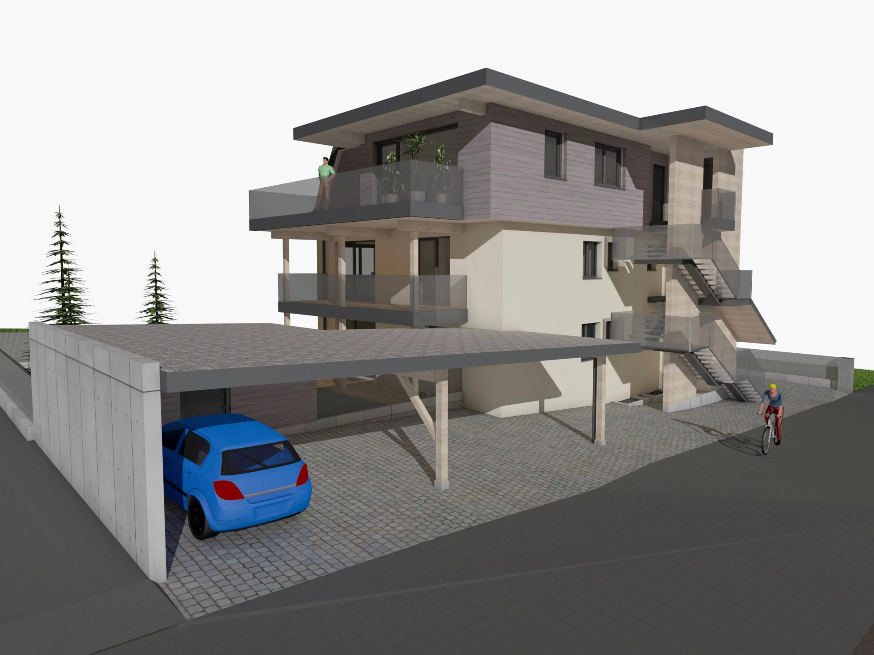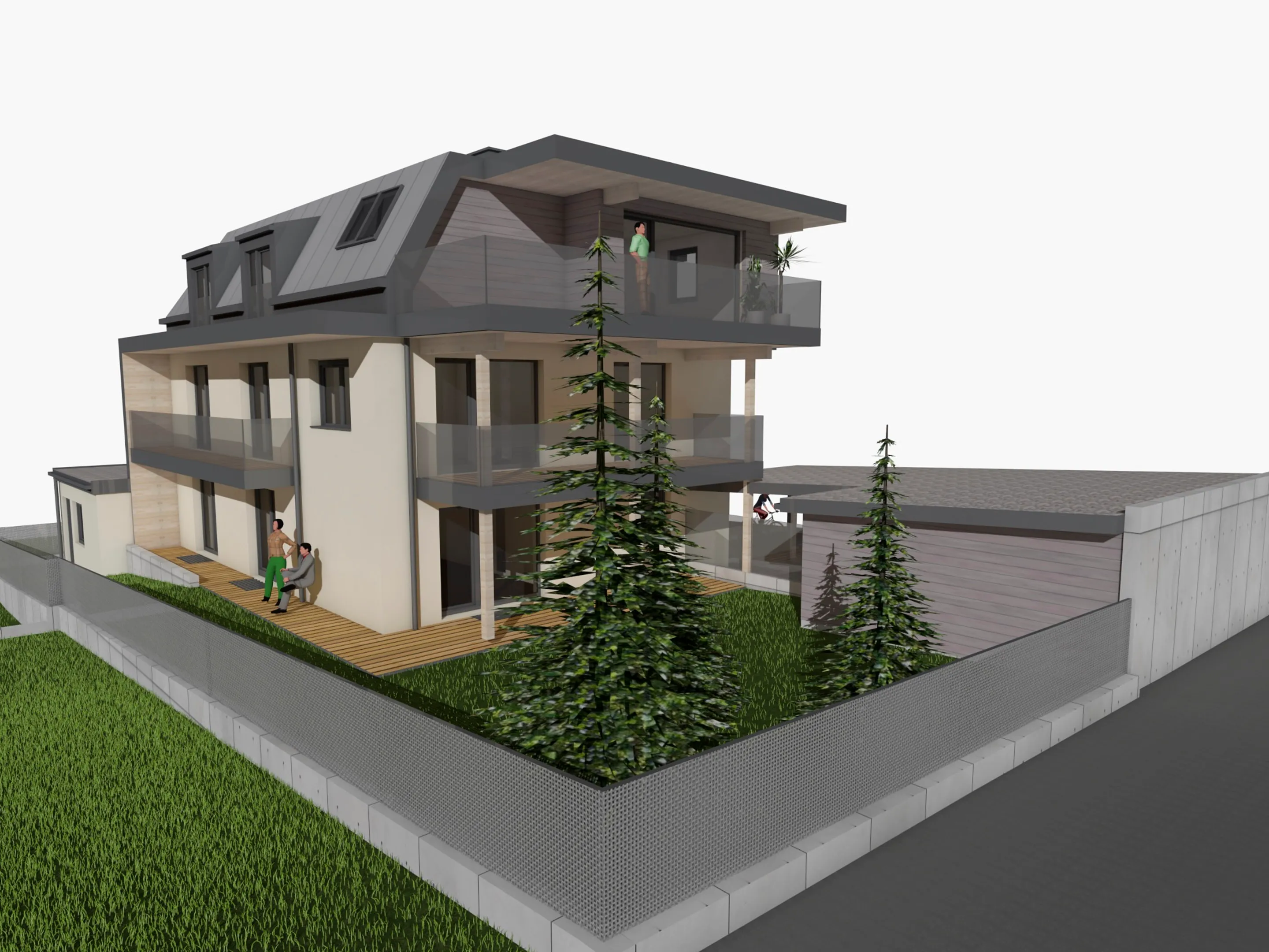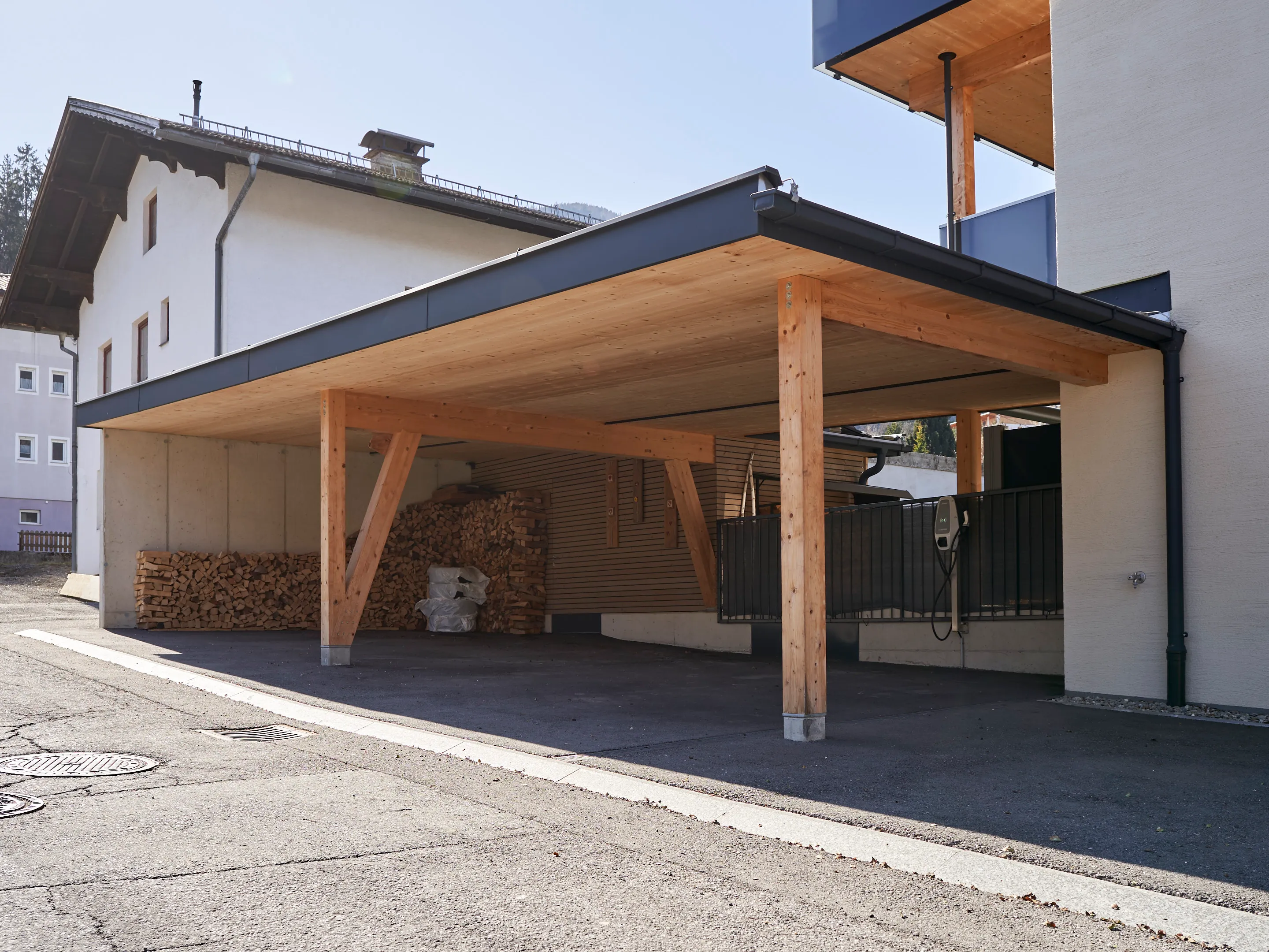 Aufgrund der großen Zufriedenheit nach der Errichtung der 10 Wohneinheiten am Stanglweg beauftragte mich der Bauherr auch mit dem Umbau seines Elternhauses. Aus einem Altbau der 60iger-Jahre erblühte hier ein schmuckes Wohnhaus mit drei Wohneinheiten. Auf komplette Ausstattung, Ökologie und Nachhaltigkeit wurde im besonderen Maße Wert gelegt. Sämtliche neuen Bauteile wurden in Holzbauweise ausgeführt. Die Wohnungen verfügen zusätzlich zur Fußboden-Zentralheizung mit Luftwärmepumpe, über einen hochwertigen Kachelofen. Naturholzparkett, Holz-Alufenster, PV-Anlage, umlaufende LED-Beleuchtung, bodenbündige Duschtassen und Küchen mit Komplettausstattung sind hier Standard. Die Dachgeschosswohnung verfügt zudem über einen eigenen Aufzug.